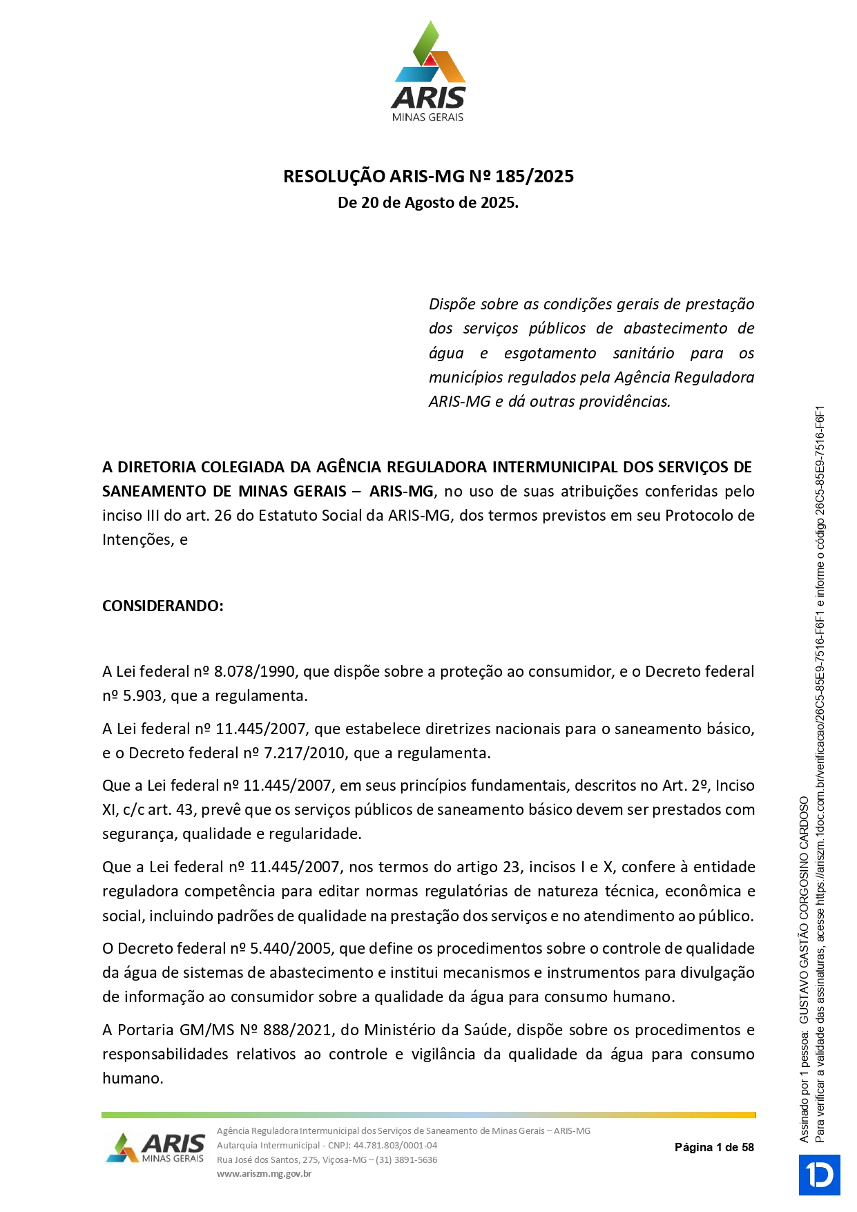 Resolução ARIS MG nº185 2025 – Condições Gerais