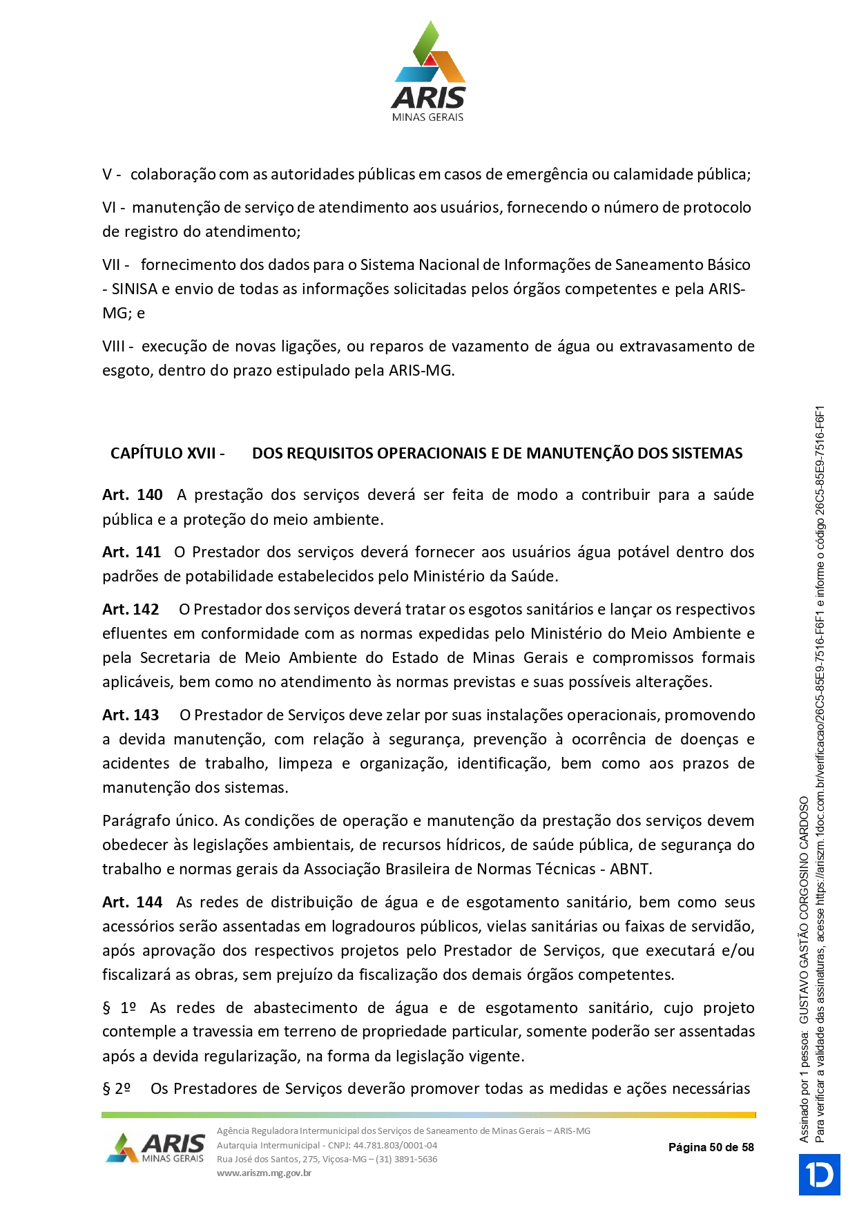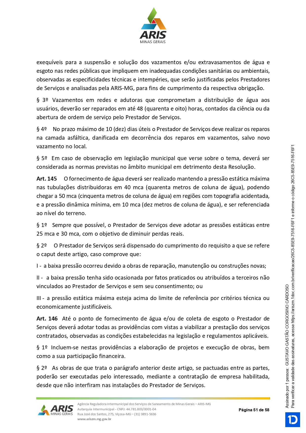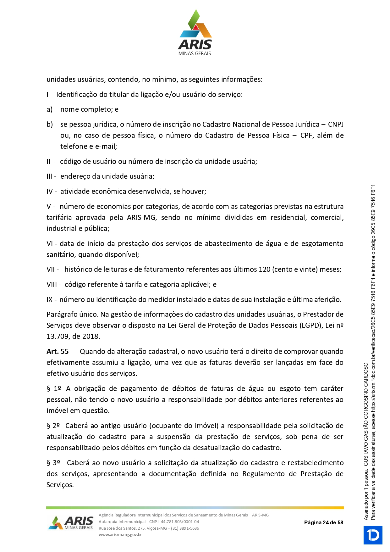 Resolução ARIS MG nº145 2024 – Reajuste Tarifário SAAE de Ipanema MG