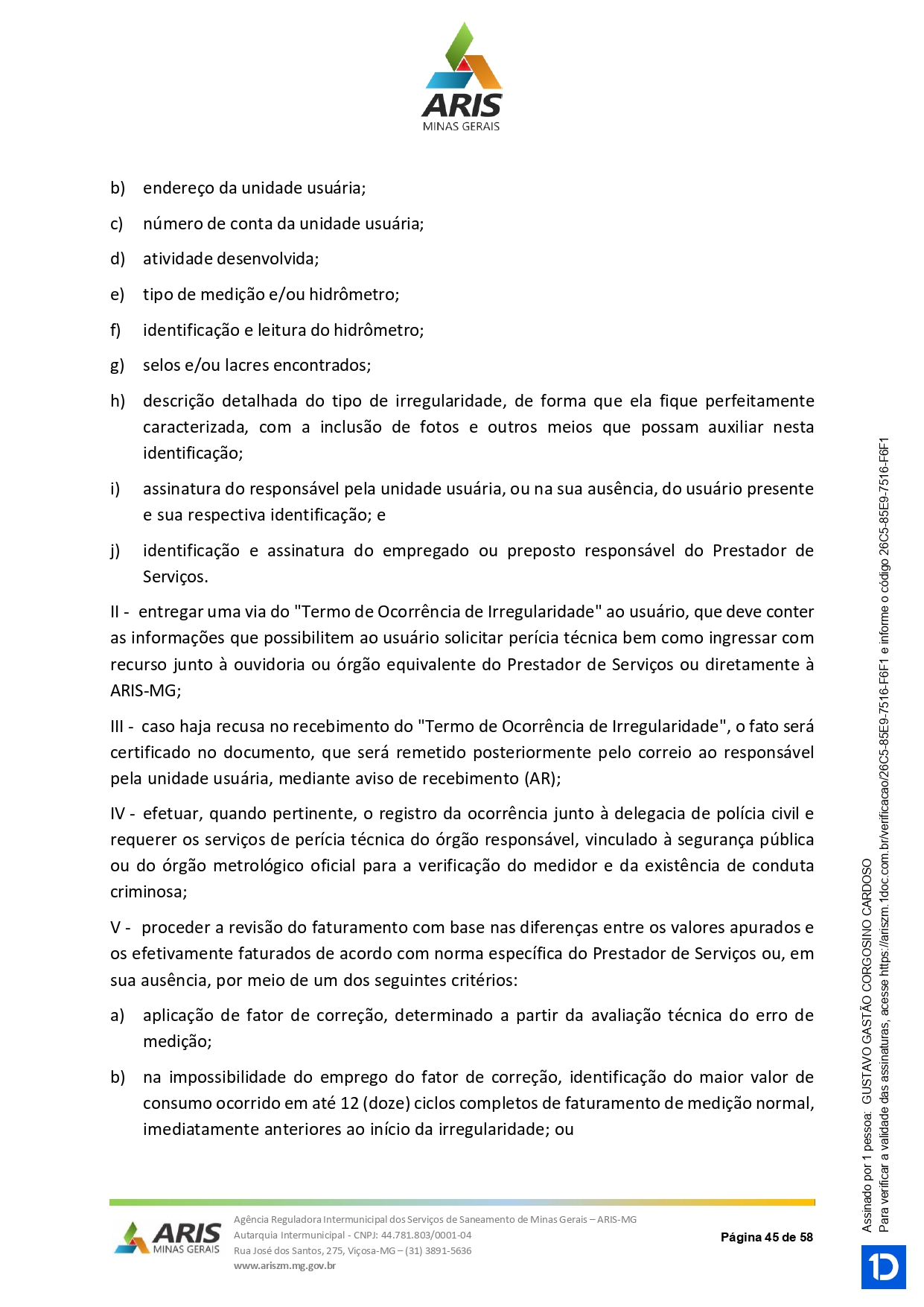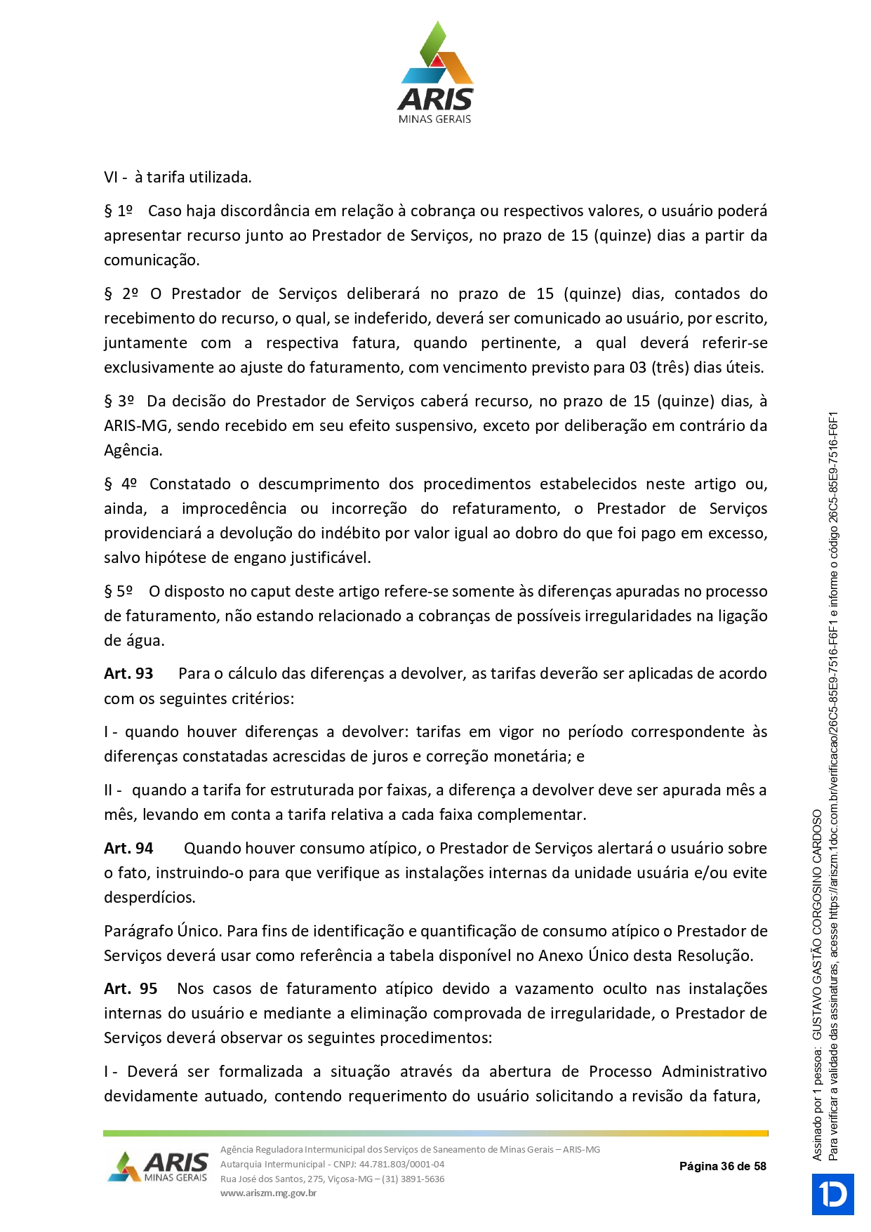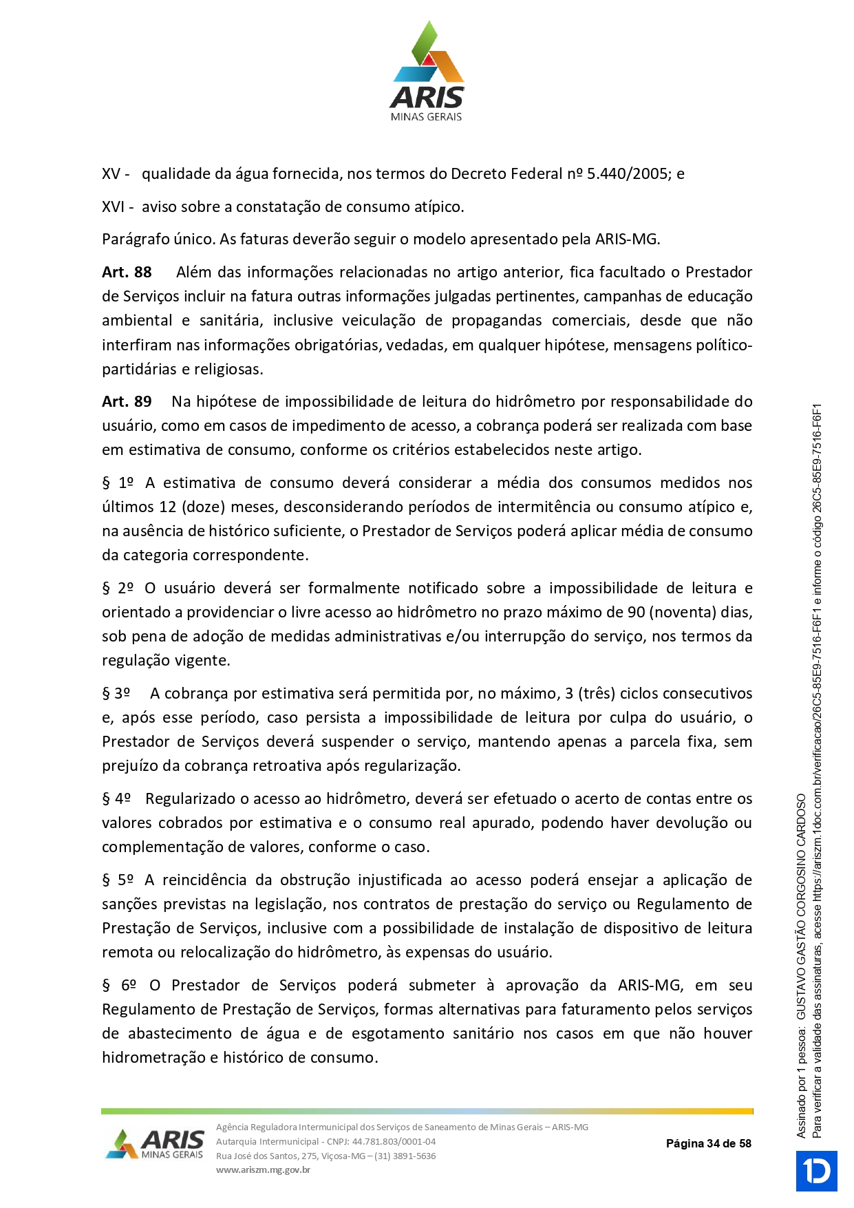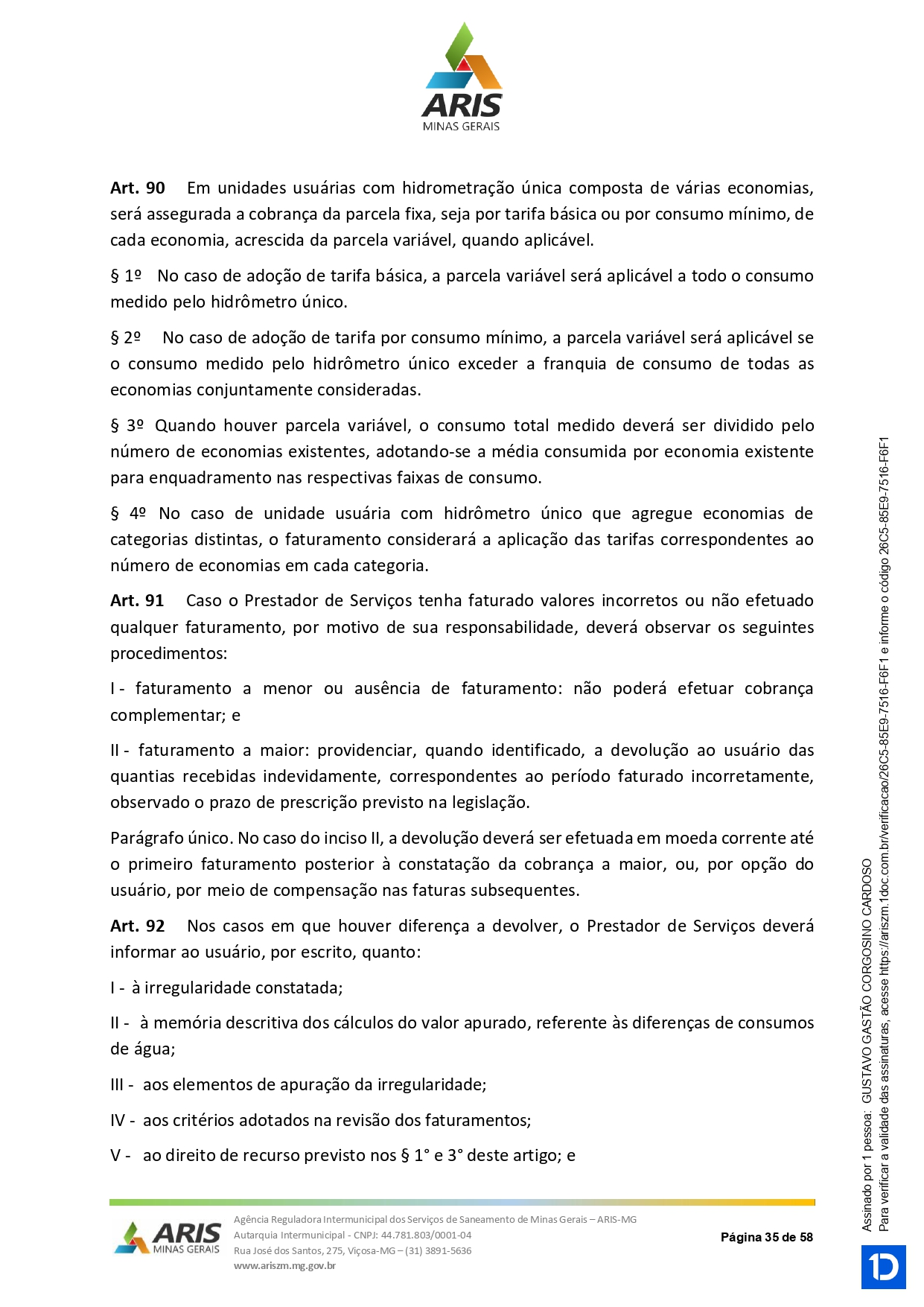 Resolução ARIS MG nº145 2024 – Reajuste Tarifário SAAE de Ipanema MG