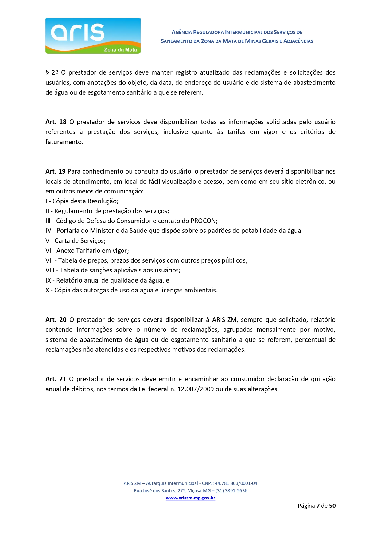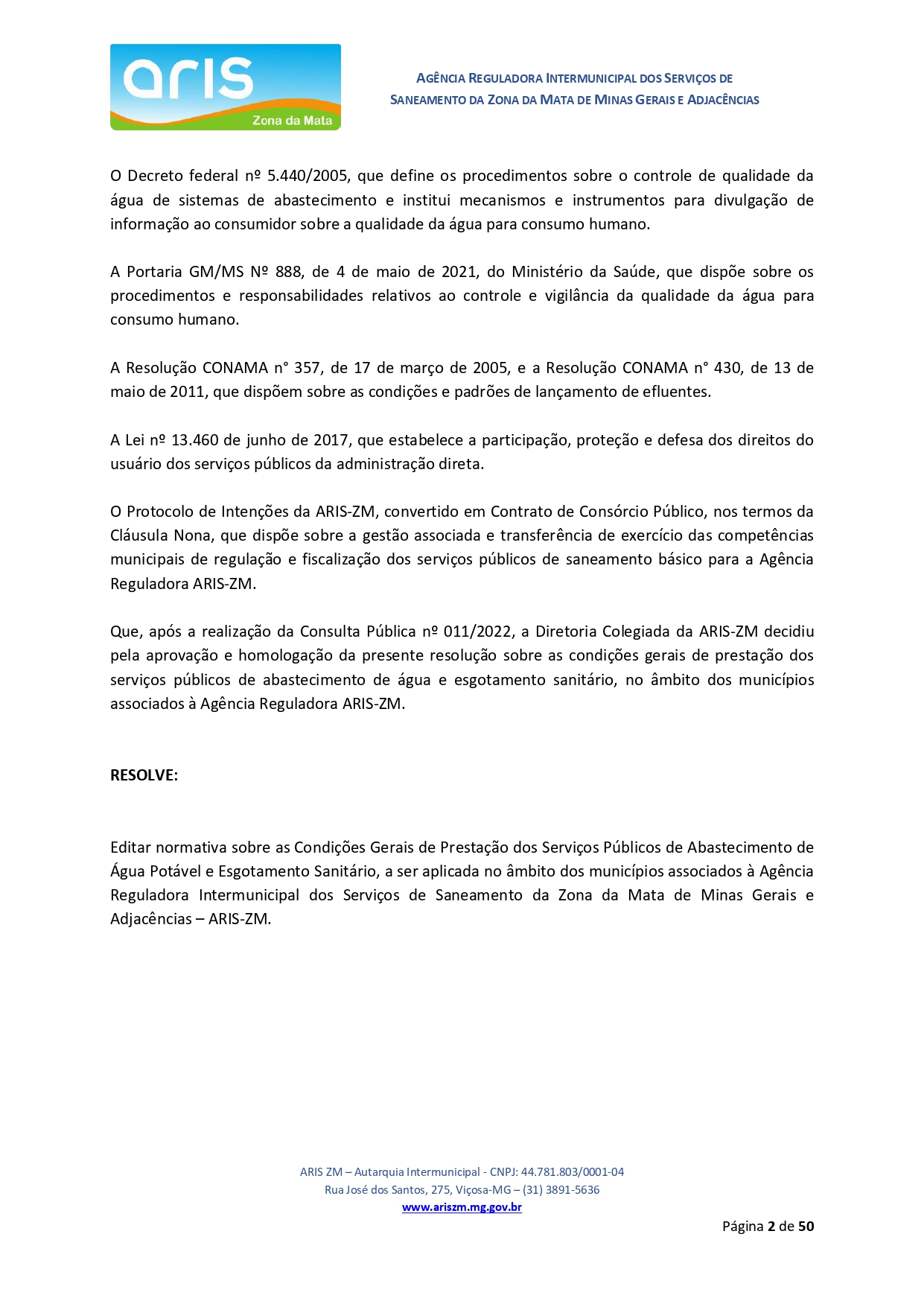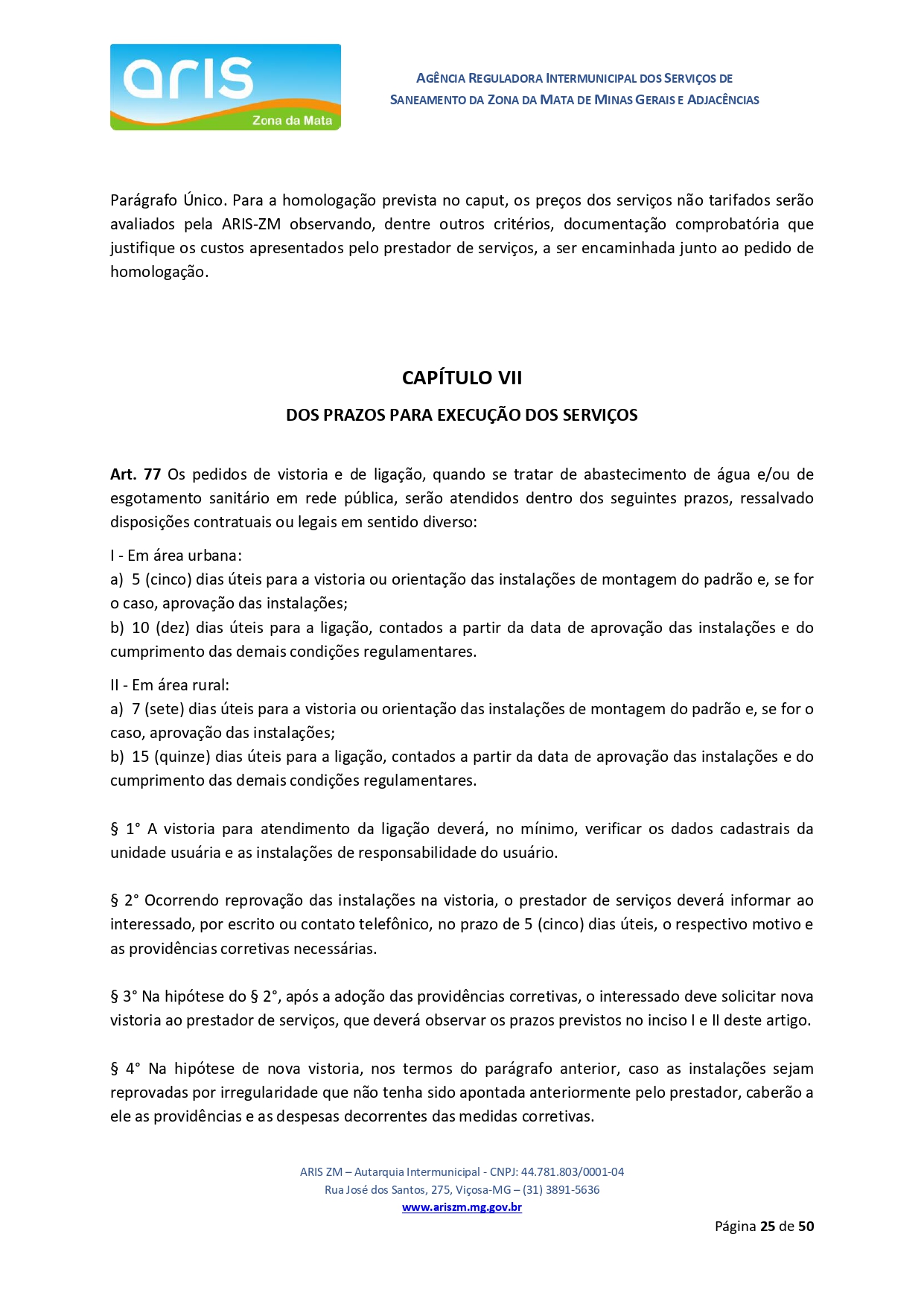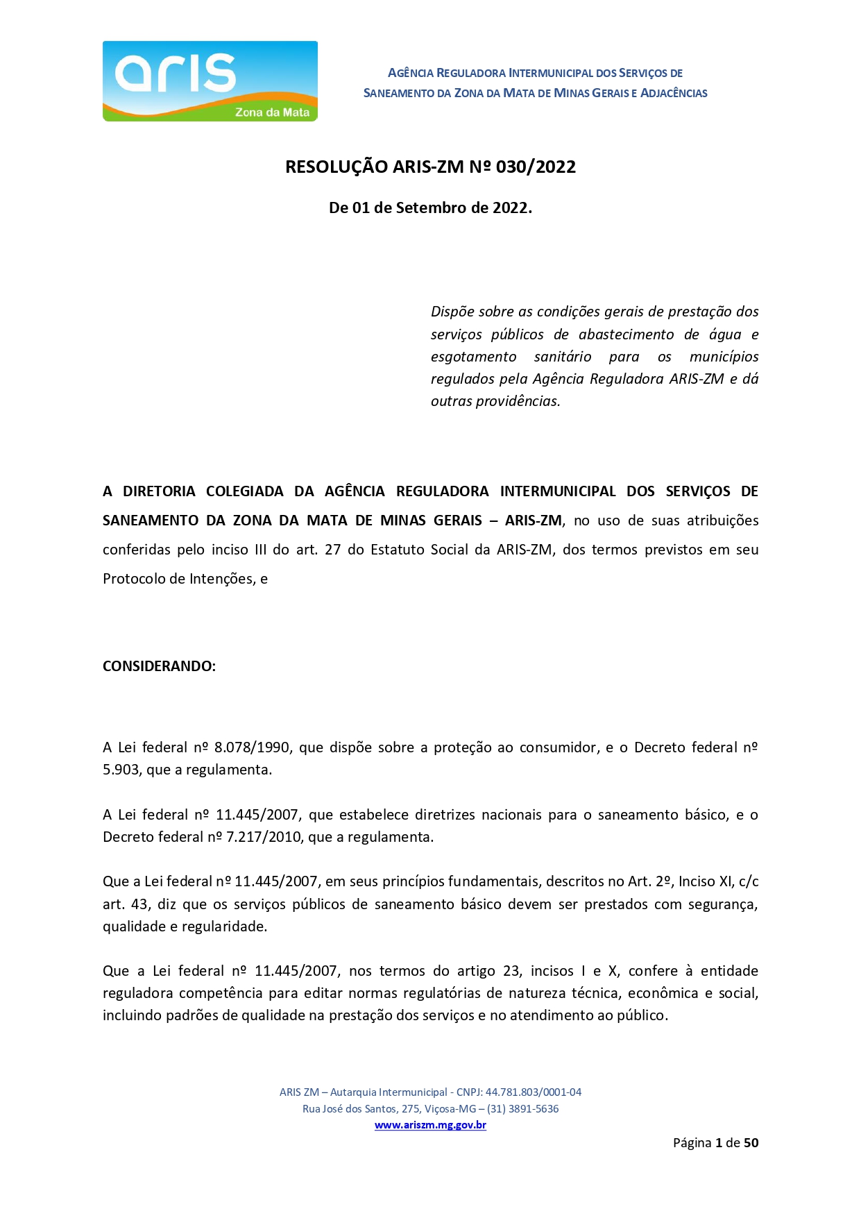 Resolução ARIS ZM Nº 030/2022 – Condições Gerais de Prestação dos Serviços SAAE