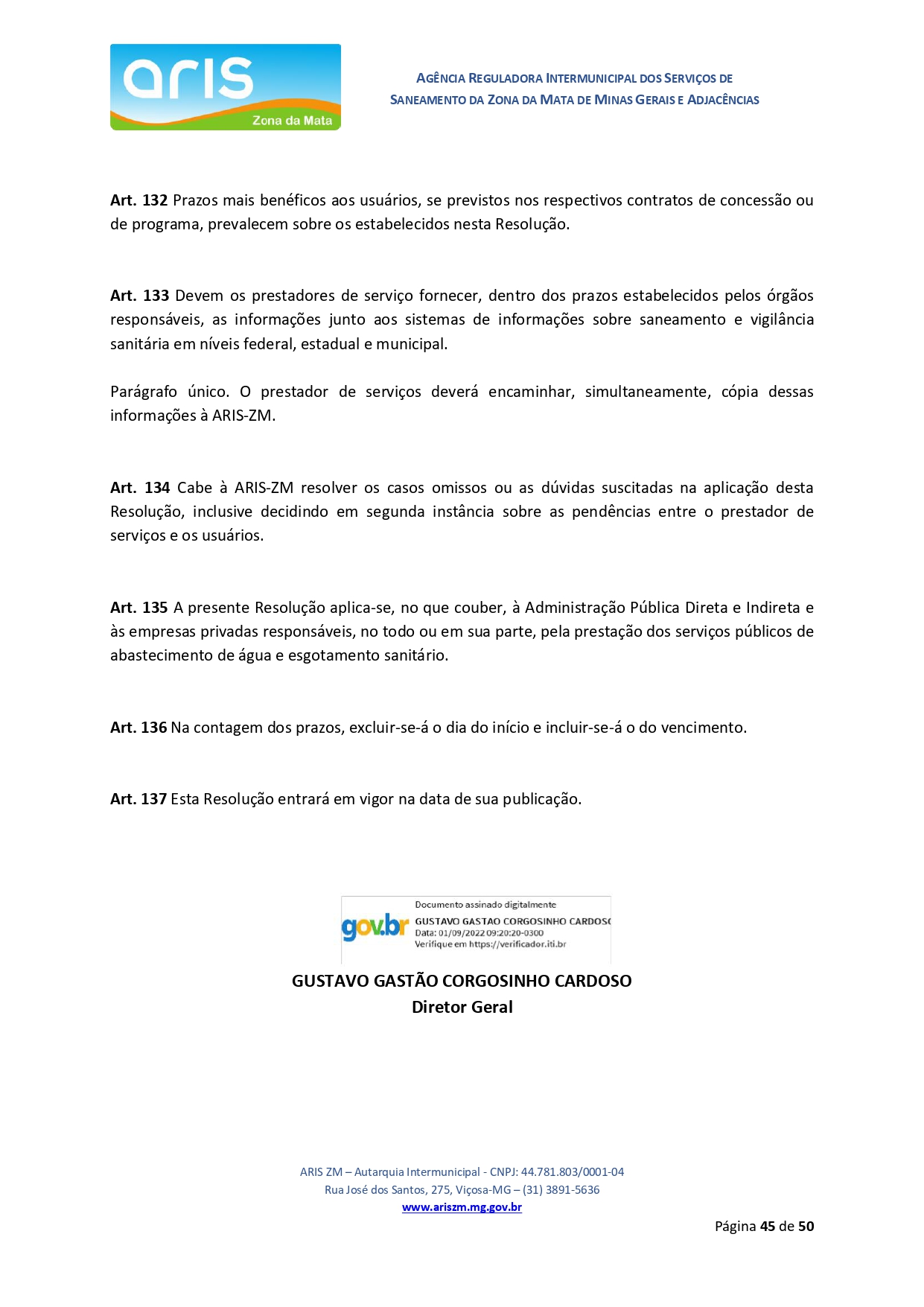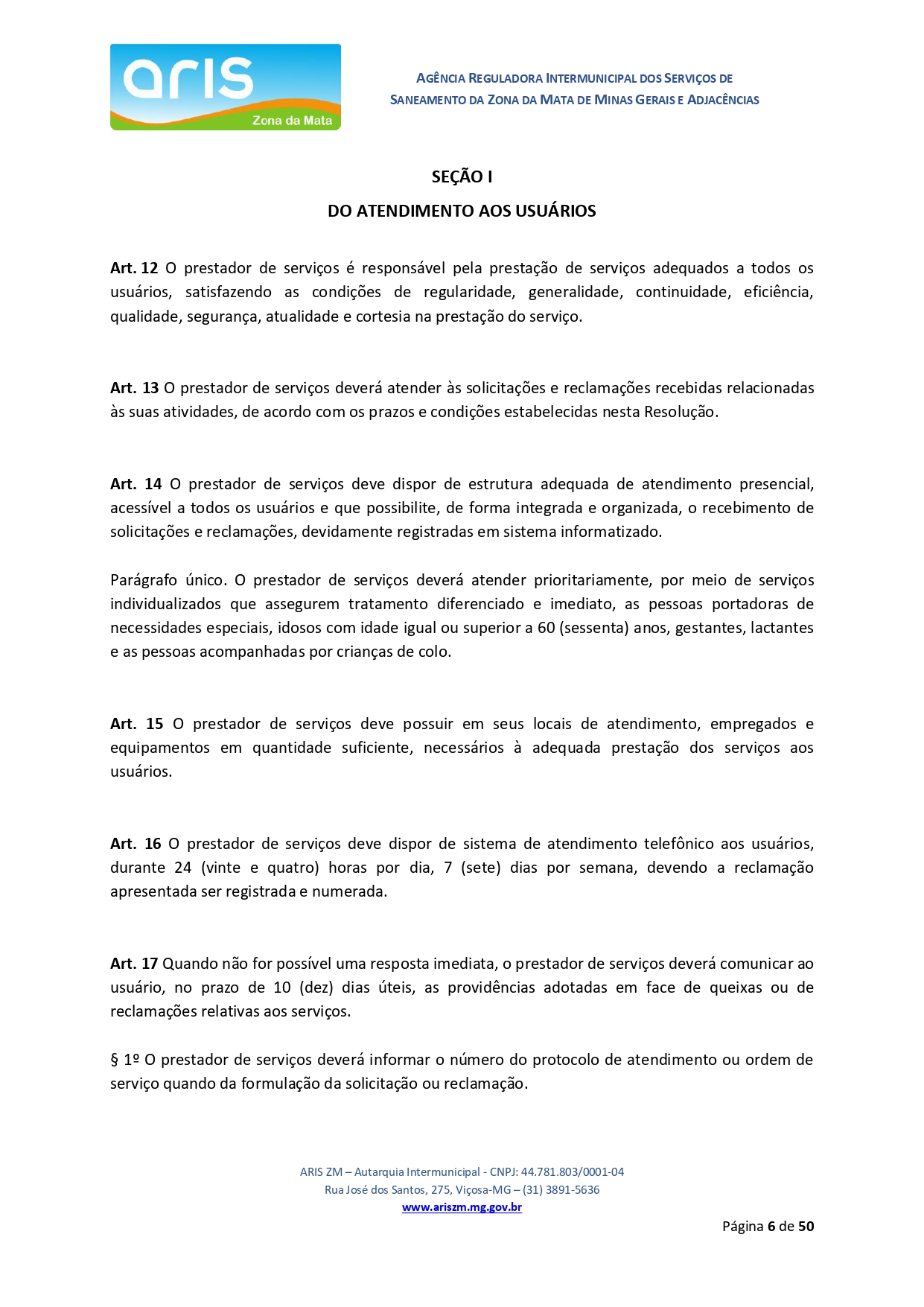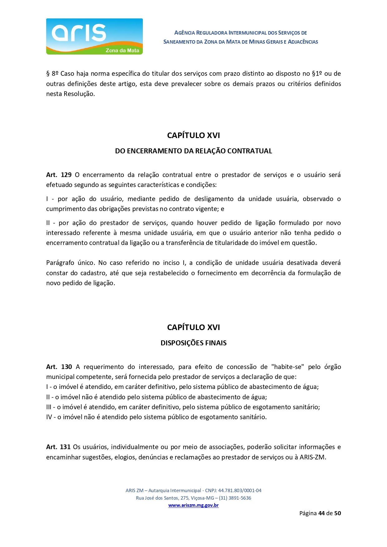 Resolução ARIS ZM Nº 030/2022 – Condições Gerais de Prestação dos Serviços SAAE