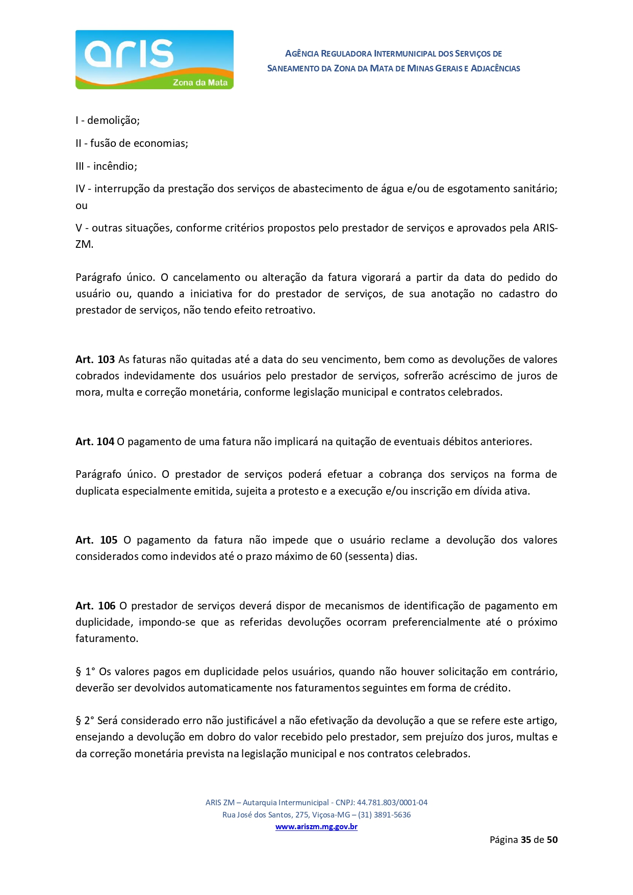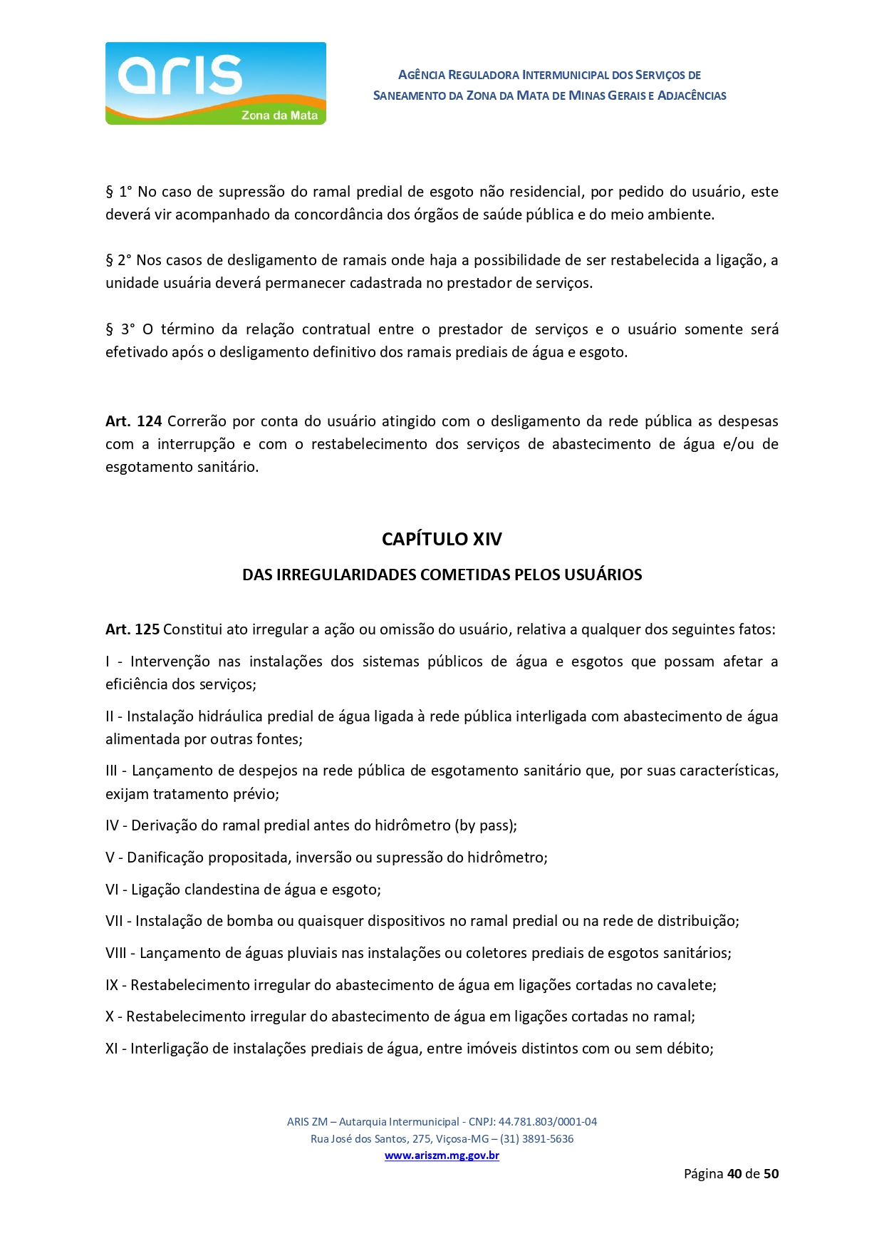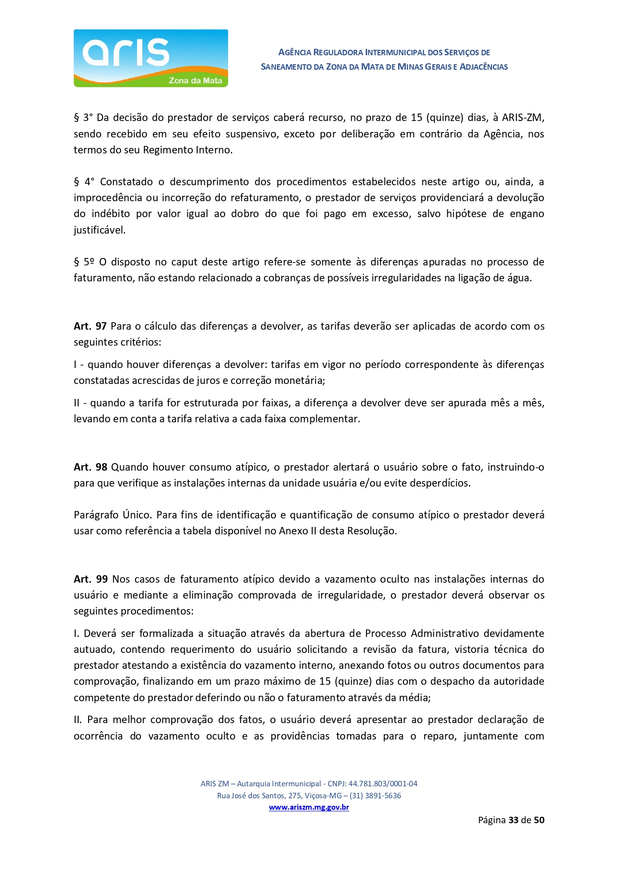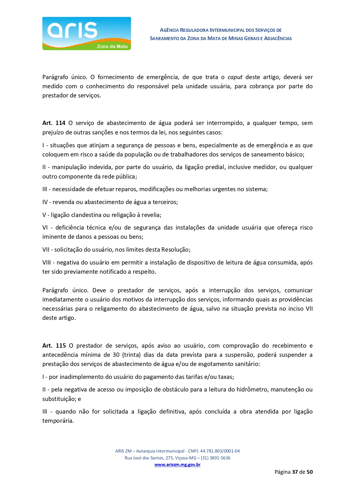 Resolução ARIS ZM Nº 030/2022 – Condições Gerais de Prestação dos Serviços SAAE
